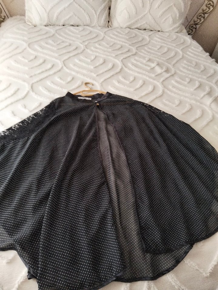 Siyah renkte, dökümlü ve salaş kesime sahip uzun etek. Sentetik kumaştan üretilmiş, bohem tarzıyla günlük kullanıma uygundur.