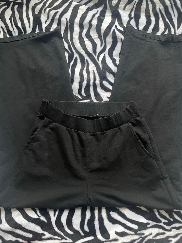 Yan cepli, elastik belli siyah mini salaş kadın eşofman altı, yumuşak sentetik kumaştan, rahat ve şık bir dış mekan görünümü sunar. (Fotografta kusurlarını belirttim önündeki boya lekesidir cok belli olmuyor kolonya aseton bulaşık deterjanıyla cıkacak lekeler diğer kusurlarıda göze batmıyorrr fiyata yansıttım