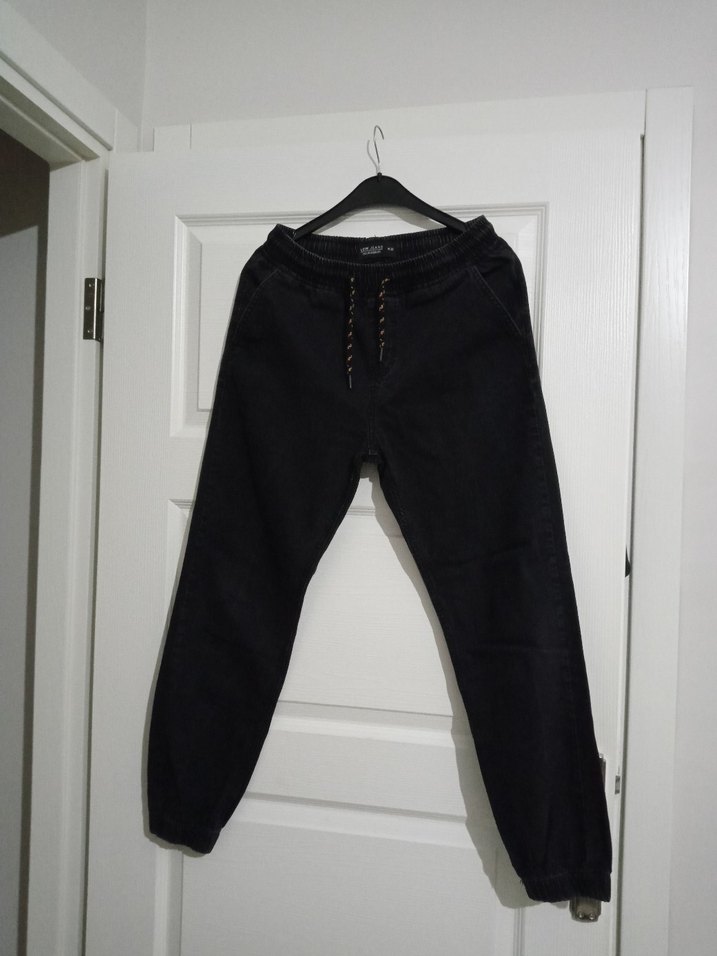 Siyah renkte, bol kesim ve kemerli bel detayına sahip denim pantolon, günlük kullanıma uygun rahat ve şık bir tarza sahiptir. Normal boy uzunluğu athleisure ve streetwear tarzına uygundur. boy uzunluğu 96 cm 28 beden erkek pantolon son fiyat indirim istemeyin lütfen