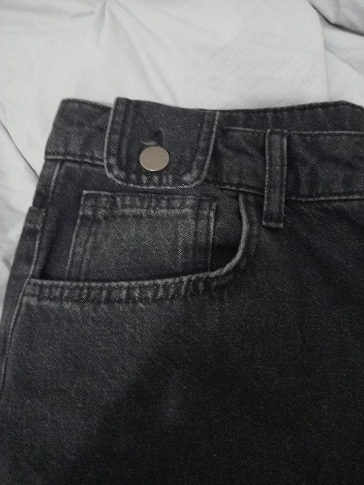 Siyah Bol Kesim Düğmeli Kadın Kot Pantolon