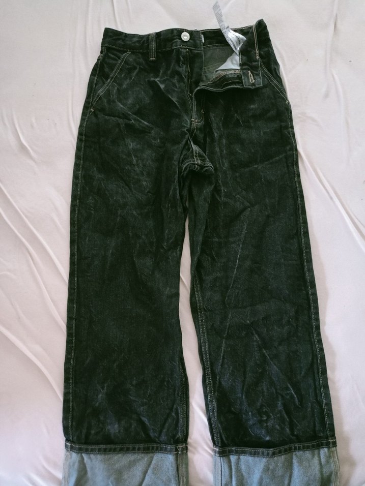 Siyah, bol kesim, normal boy midi denim pantolon. Rahat ve şık, günlük kullanıma uygun.