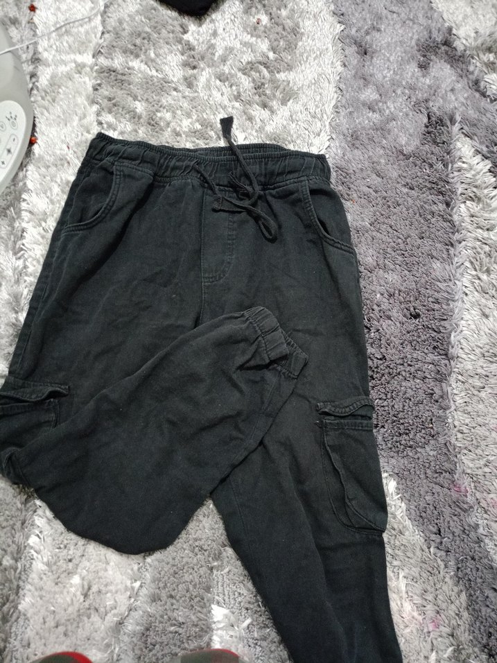 Siyah bol kesim kot pantolon, orta boy ve elastik bel detayına sahip. Günlük sokak stiline uygun, rahat ve şık görünümlü.