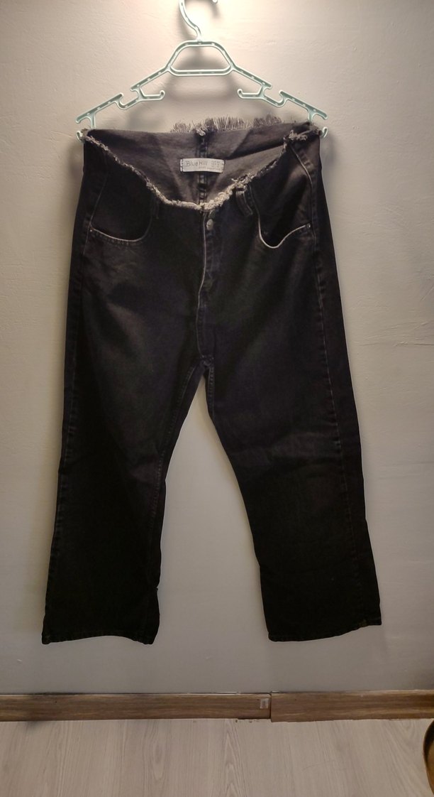 Siyah Bol Kesim Kadın Kot Pantolon