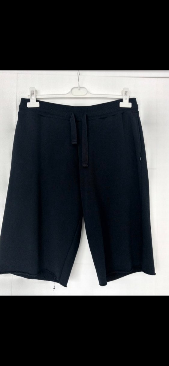 kemerli bel ve bol kesime sahip siyah erkek şort, günlük rahat kullanım için uygundur.