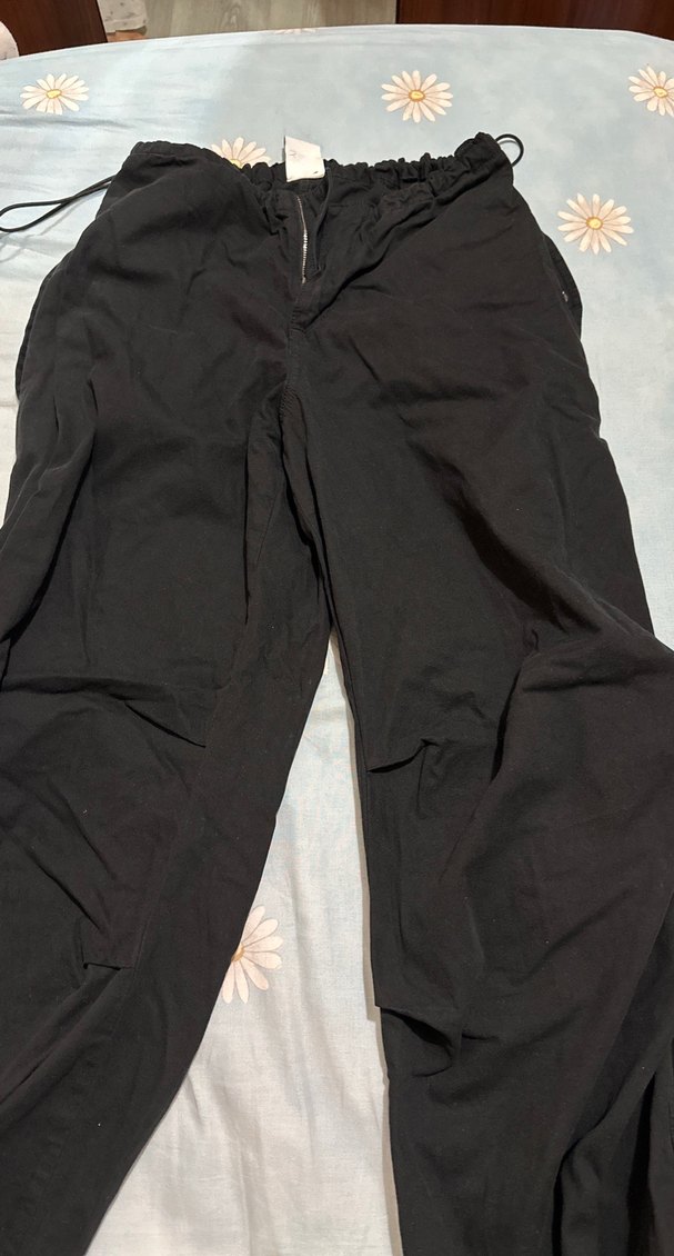 Siyah keten kumaştan, bol kesim ve midi boyda, rahat ve şık kadın pantolonu.