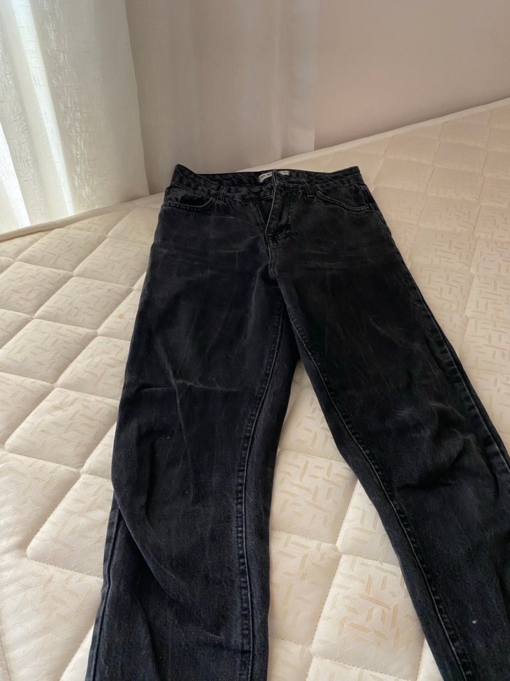 Siyah, bol kesim midi uzunlukta denim kadın jean. Günlük kullanıma uygun rahat ve şık sokak stili. Desensiz, koyu renk kumaşla tasarlanmıştır.