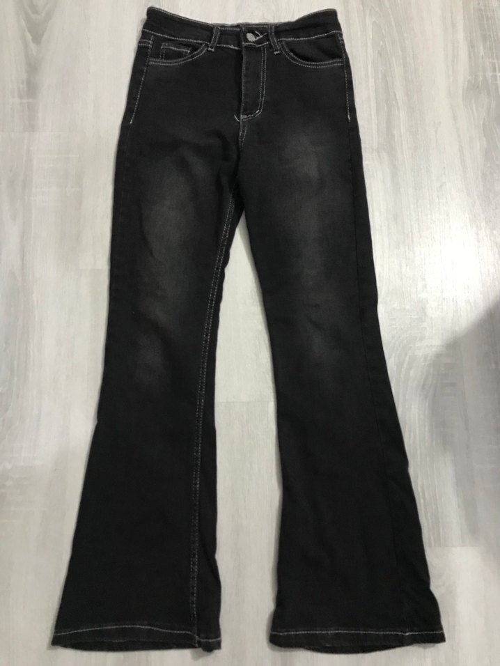Siyah bol kesim midi boy denim pantolon, koyu goth ve grunge punk tarzında, günlük rahat kullanım için uygun. ✨