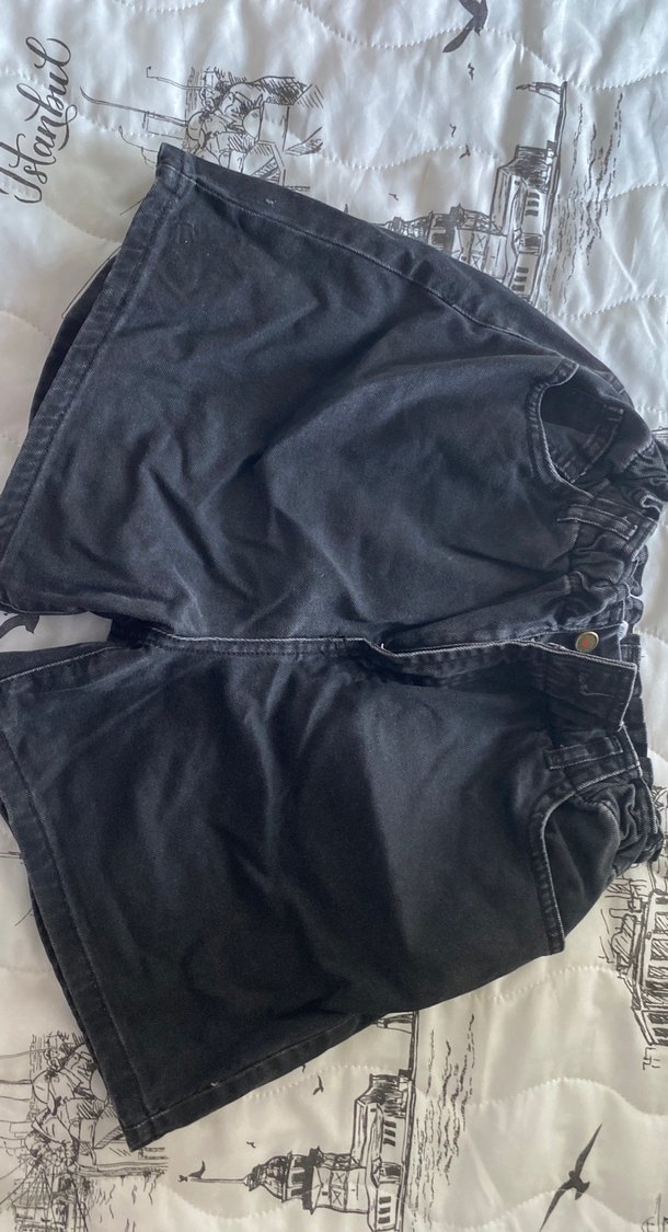 Siyah Bol Kesim Midi Denim Şort