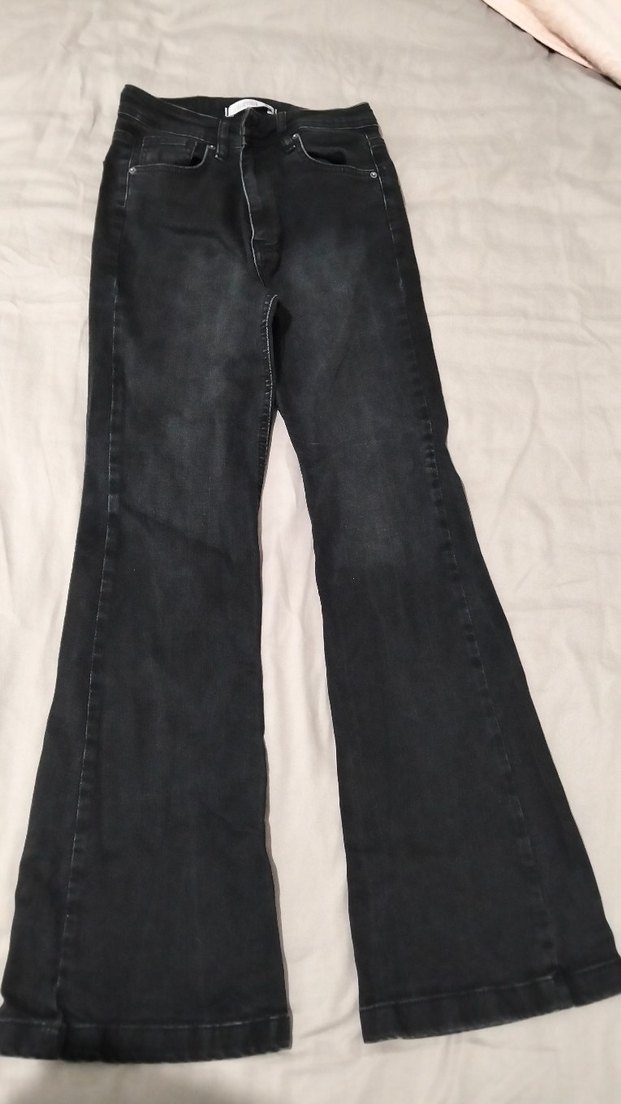 Siyah denim kot pantolon, bol kesim ve midi boyda, günlük kullanım için rahat ve zahmetsiz şıklık sunar. Trendy, normcore tarzına uygundur.