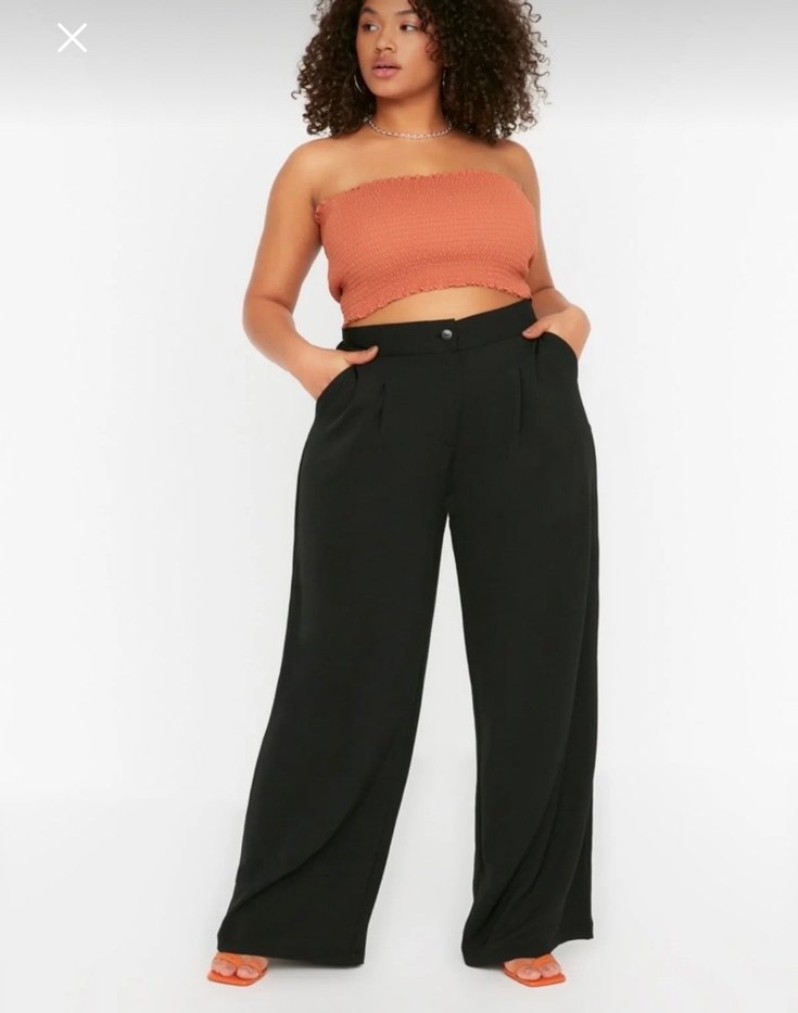 Siyah Bol Kesim Midi Kadın Kumaş Pantolon