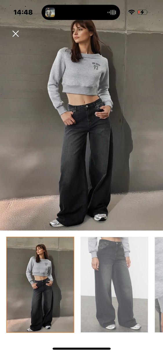 Siyah denim kumaştan yapılmış, bol kesim ve midi boy kot jean. Aynı model 3 pantolonum daha olduğu için satıyorum yeni sezon geçtiğimiz ay almıştım