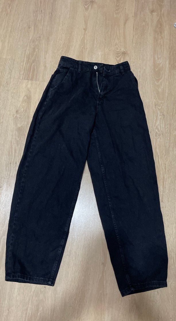 Normal boy, bol kesim siyah kot pantolon. Rahat ve şık, günlük sokak stili için ideal.