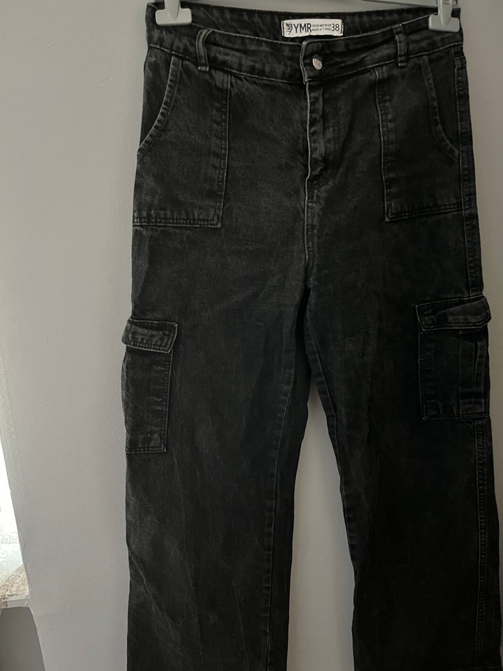 Siyah bol kesim midi kot pantolon, tokalı detaylarla günlük rahat kullanıma uygundur. ✨