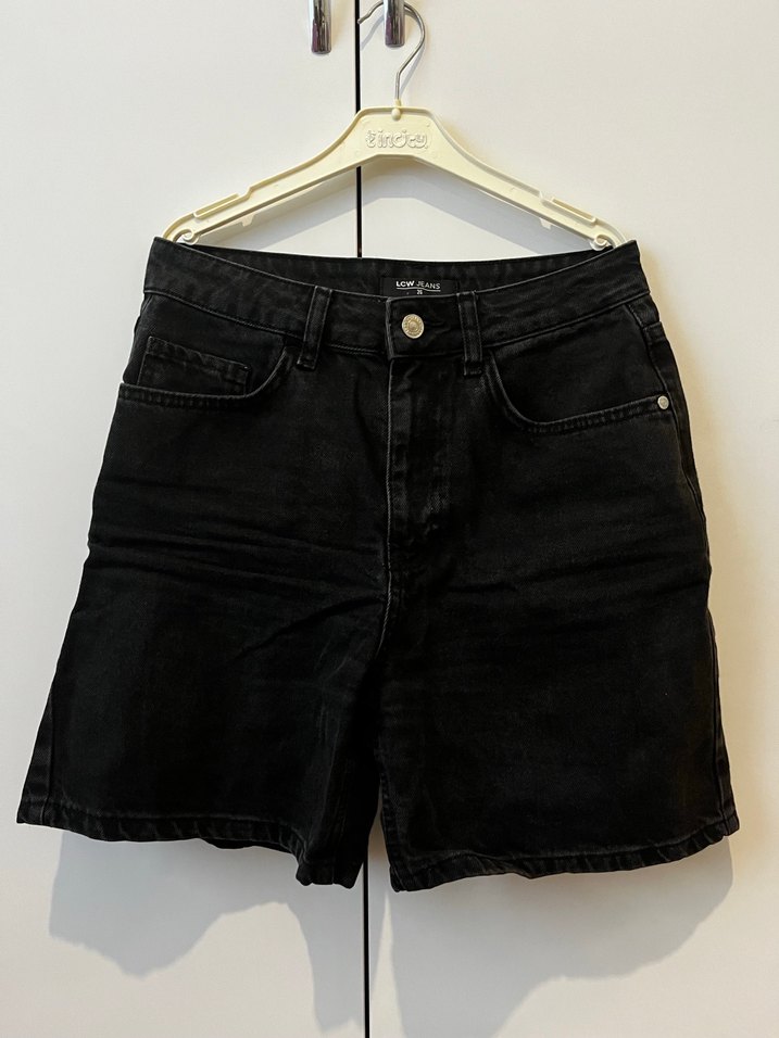 Siyah bol kesim mini denim şort, günlük rahat kullanıma uygun, zahmetsiz şıklık sunar. Trend sokak stiline uygundur.