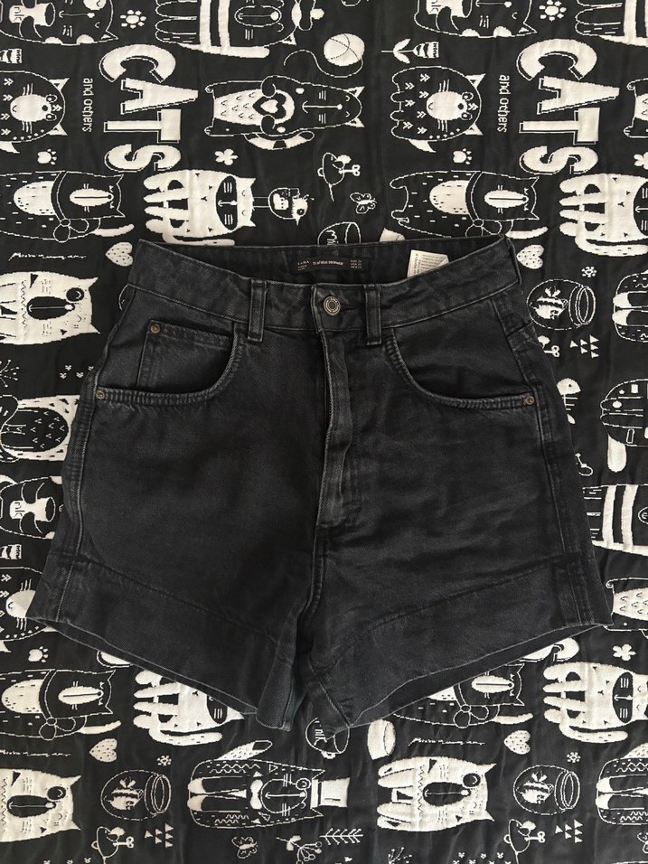 Siyah, bol kesim mini kot şort, tokalı detaylı. Grunge punk havasında, sokak modasına uygun, günlük kullanıma elverişli.