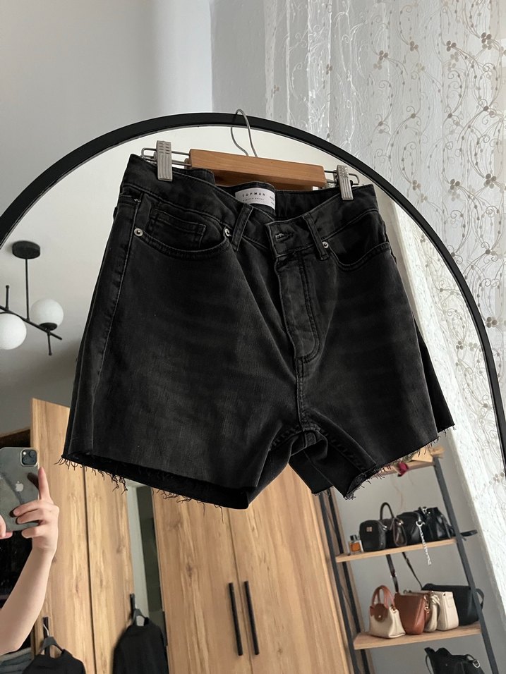 Siyah renkli, bol kesim ve kısa boy kot şort. Tokalı detayıyla günlük sokak stiline uygun, desensiz çok yüksek bel değil normal bel hiç giymedim