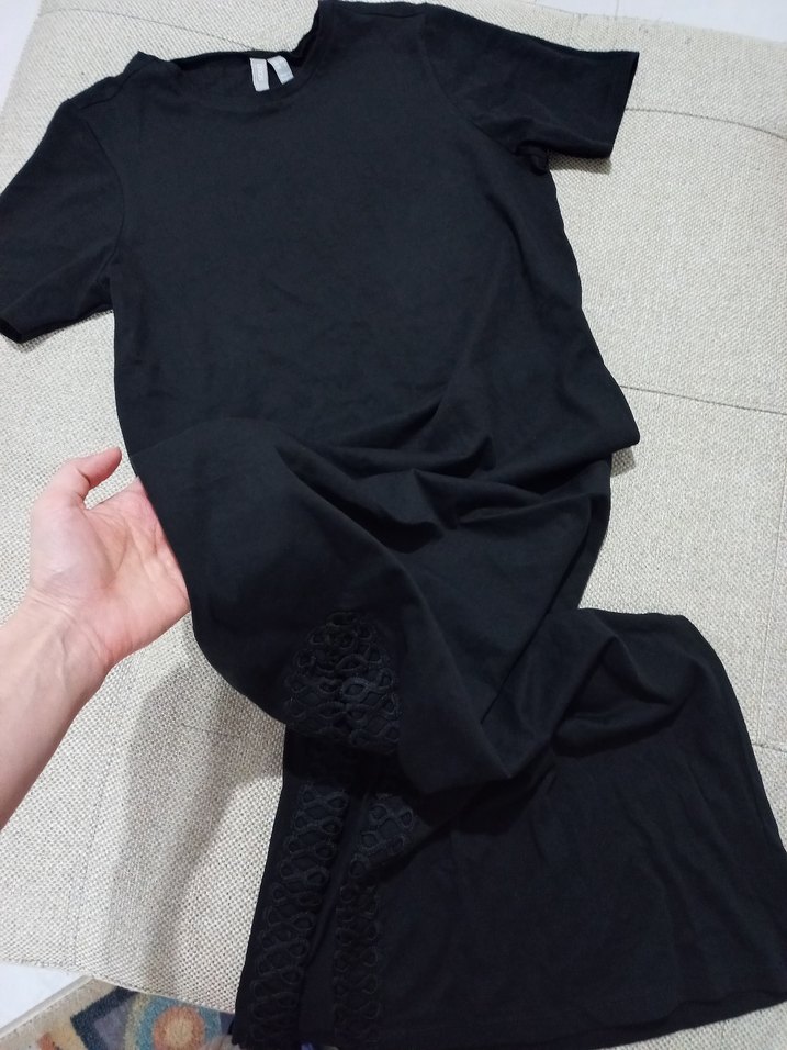 Siyah, bol kesim , kısa kollu ve bisiklet yaka, uzun kadin elbise günlük kullanım için uygun ( xs , s bedene uygun , vücutda bol durdugunda daha guzel gorunuyor )