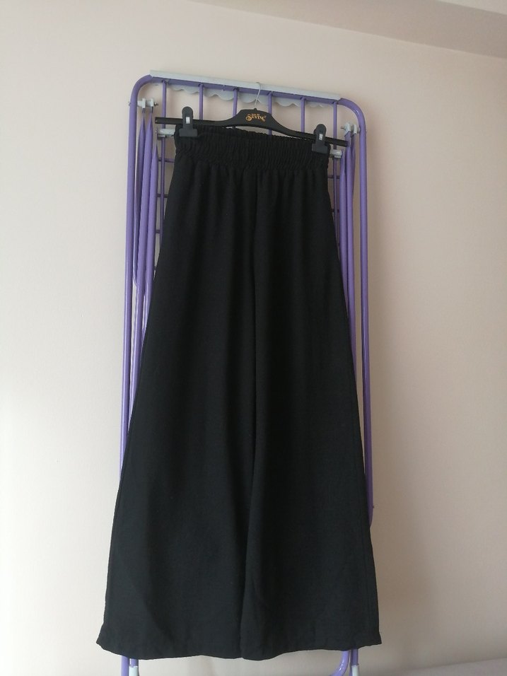 S M beden uyumlu siyah bol pantolon. Hiç bir deformasyonu yok. Yepyeni ve tertemiz.