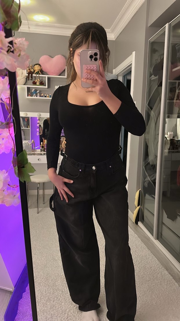 Siyah boll Kadın Jean Pantolon