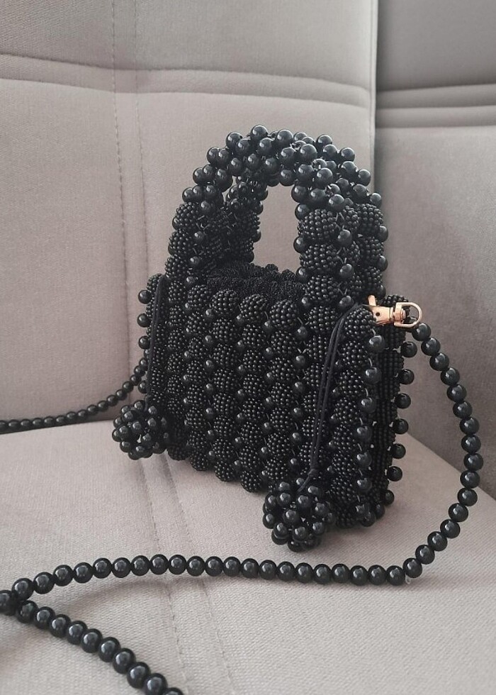 Siyah Boncuk Çanta Böğürtlen Boncuk