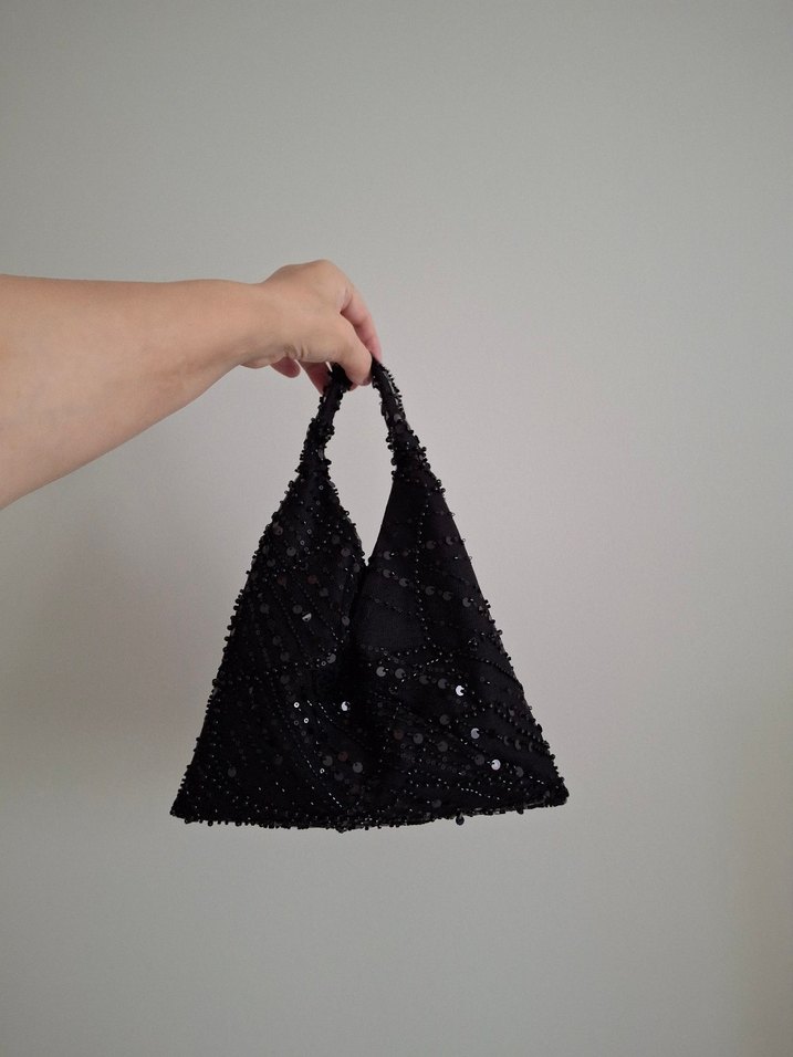 Siyah Boncuk İşlemeli Abiye El Çantası #handbag
