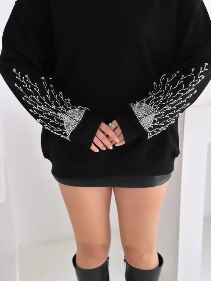 Siyah boncuk işlemeli kadın bluz