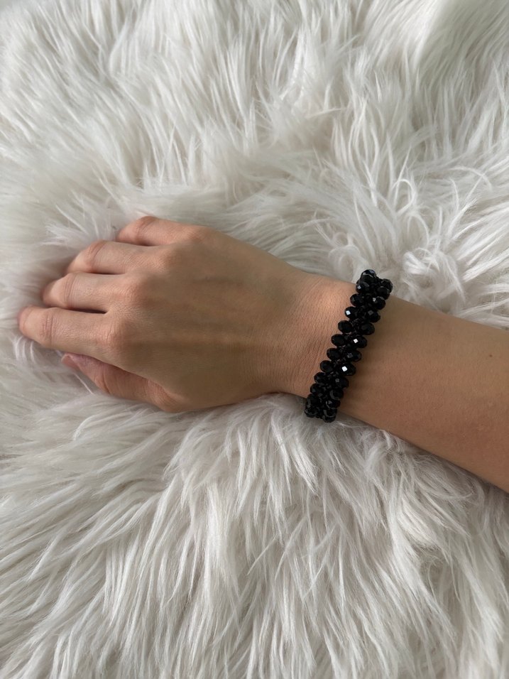Siyah Boncuklu Desenli Bileklik