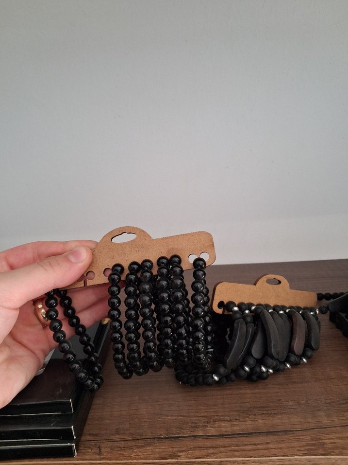 Siyah boncuklu el zinciri, gotik tarzda ve bohem esintili. Desensiz ve günlük kullanıma uygundur.