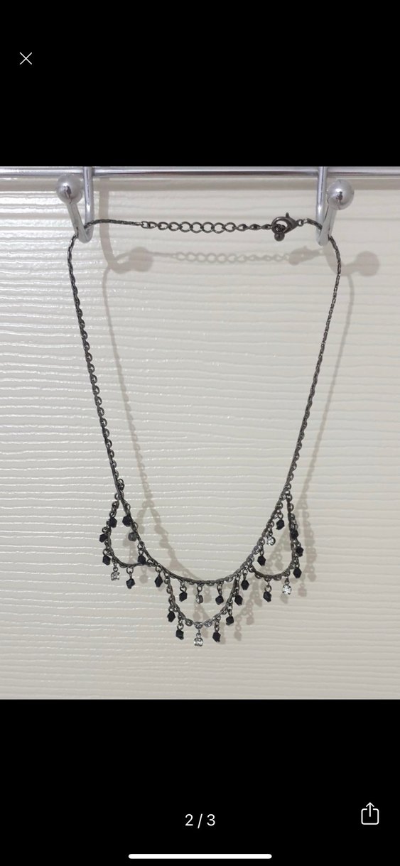 Siyah boncuklu ve nakış detaylı gotik kolye, normal midi uzunlukta zincirle günlük kullanıma uygun bohem ve retro tarzda.