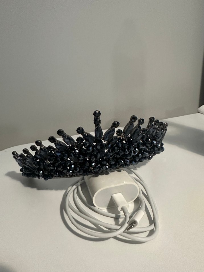 Siyah plastikten yapılmış, koyu boncuklarla süslenmiş gotik tarzda saç aksesuarı, moda tutkunları için uygun.
