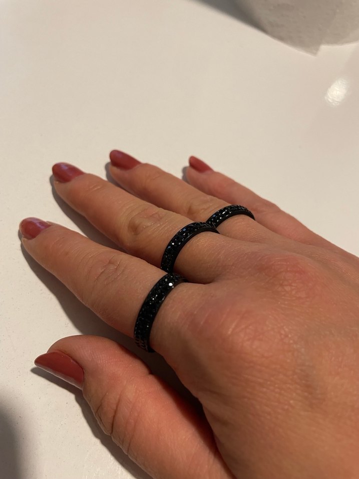 Siyah boncuklu, kadın yüzükleri, romantik akşamlar için uygun. Sade ve temel stile uyumlu. 7-8-9 numaralar var