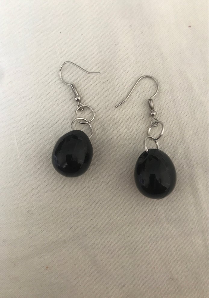 Minimalist siyah boncuklu, desensiz ve normal midi uzunlukta kadın küpeleri, gotik tarzda romantik akşamlar için uygun.