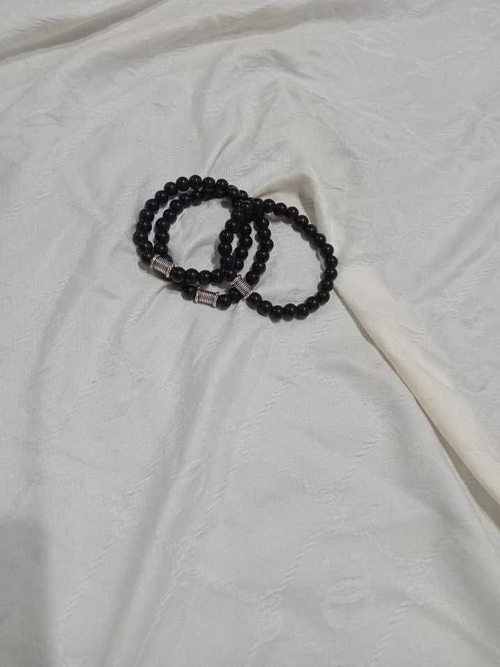 Siyah boncuklardan oluşan bu bileklik, minimalist gotik tarzıyla günlük kullanıma uygun, rock punk havası taşıyor. Desensiz ve koyu renklerdedir. erkek bileklik