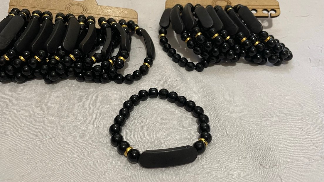 Kadınlar için siyah boncuklu, sade ve desensiz tasarıma sahip, altın detaylı minimalist ve gotik tarzda günlük bileklik. Adet 60 tl