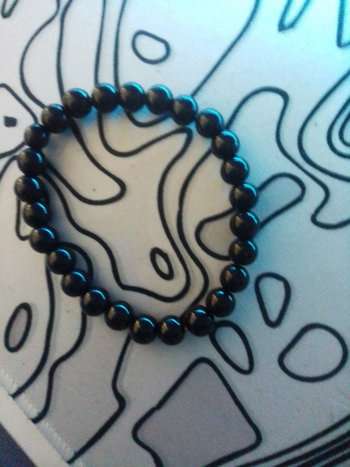 Siyah boncuklardan oluşan, minimalist ve gotik tarzda kadın bileklik, günlük kullanım için uygun, rock punk havası taşıyor.