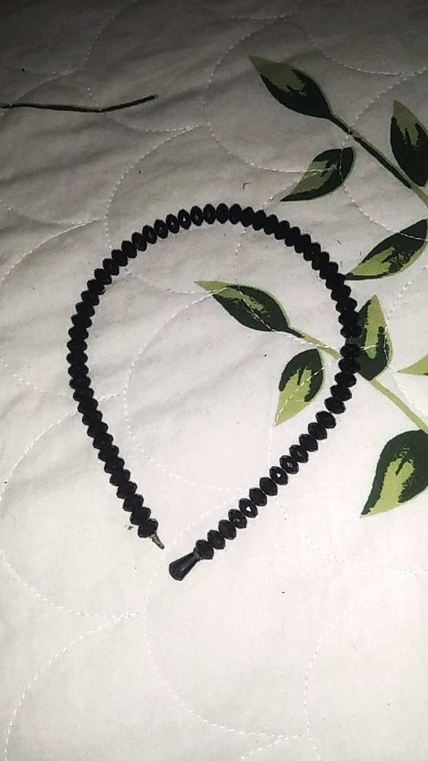 Siyah, boncuklu plastikten yapılmış minimalist tasarımlı saç bandı, gotik ve punk tarzlar için uygun.