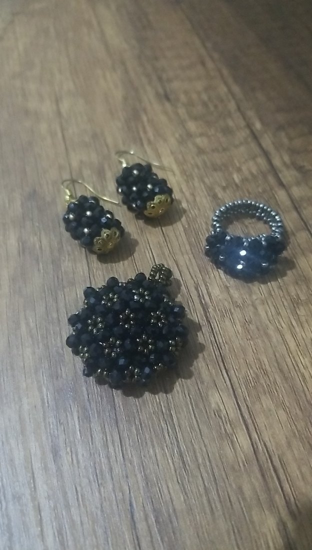 Siyah boncuk ve nakış detaylı, vintage bohem tarzda kadın takı seti, günlük kullanıma uygun.