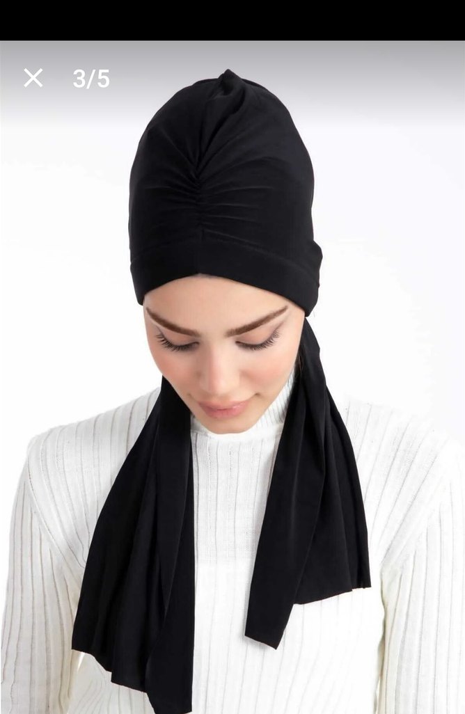 Siyah kadın bone şal sentetik kumaştan drapeli tasarıma sahip, rahat ve modest goth tarzını yansıtıyor.