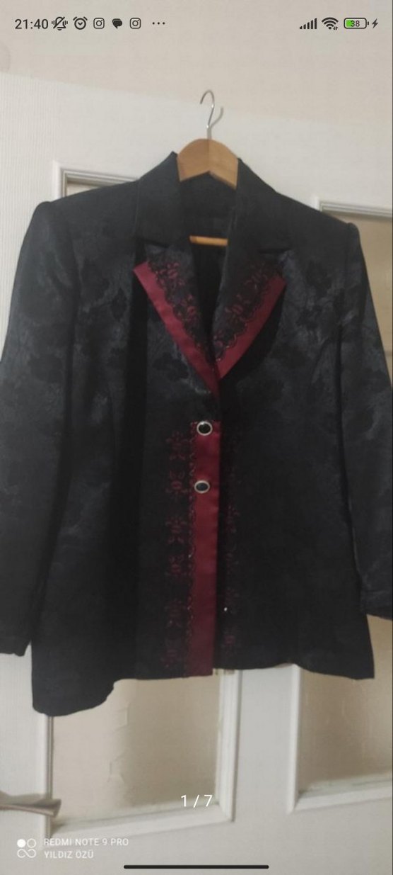 Siyah Bordo renkli, dokulu gotik tarzda, düğmeli, normal boy midi ceket Uzun kollu ve klasik kesim,