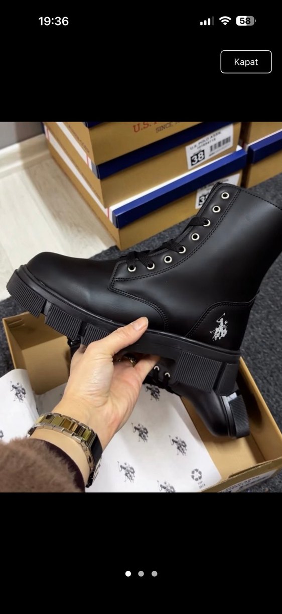 Siyah rmalzemeden, , tokalı ve desenli sokak stili botu. 38 numara (ABD). Rock punk havasında şık.
