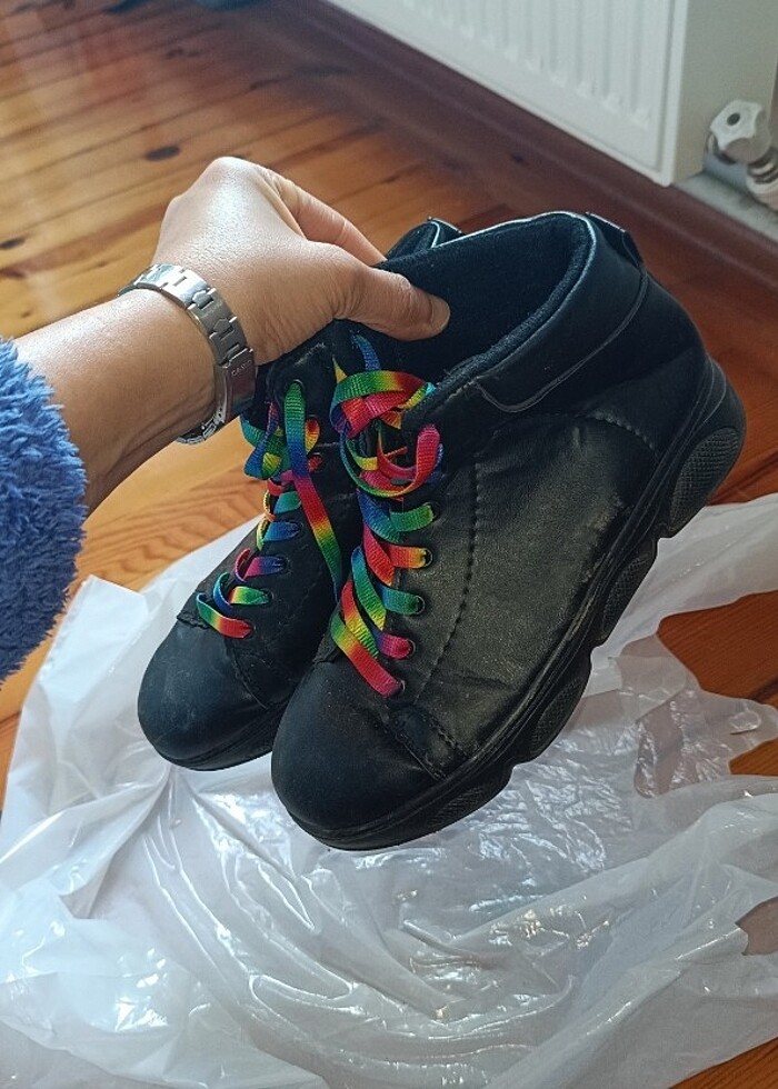 Defosu yoktur. Renkli bağcıkları ben almıştım, bağcıksız göndereceğim. Uzun zamandır kullanmadığım için satışta. Alana şimdiden hayırlı olsun.