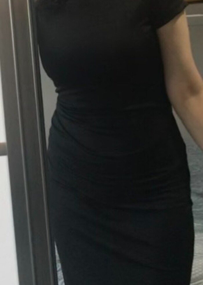 SİYAH BOYDAN YAPIŞAN KISA KOLLU ELBİSE
