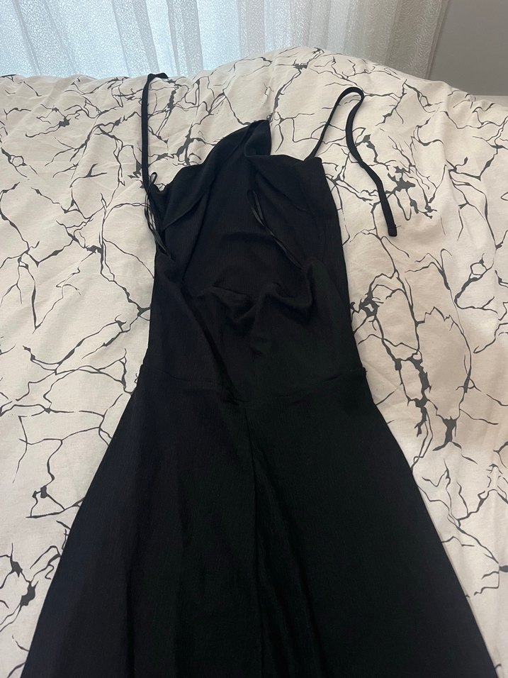 Siyah,boyundan bağlamalı,göğüs altında penceresi olan , kolsuz, vücuda oturan uzun tulum . Gotik ve avangart tarzda özel günler için uygundjr ve esnek bir kumaşa sahiptir.