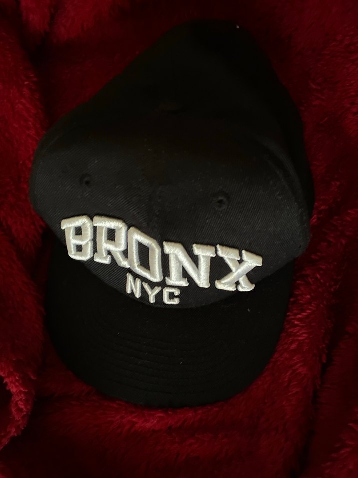 Siyah, 'BRONX NYC' nakışlı, cırt cırtlı kadın şapkası, sentetik kumaştan.