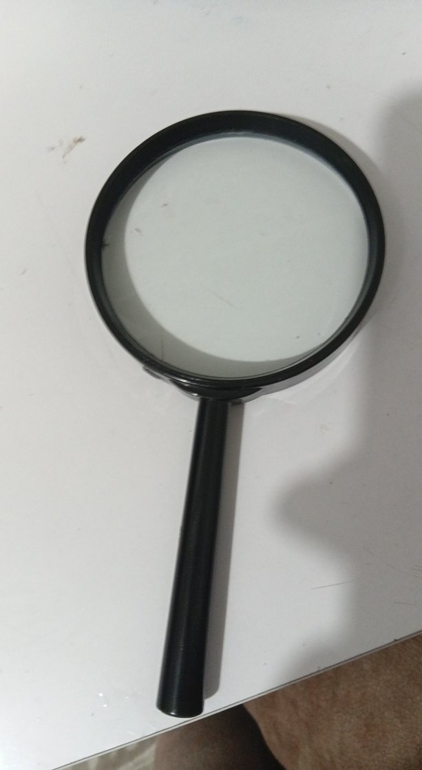Yuvarlak lensli ve uzun saplı siyah büyüteç, yakından inceleme için uygundur.