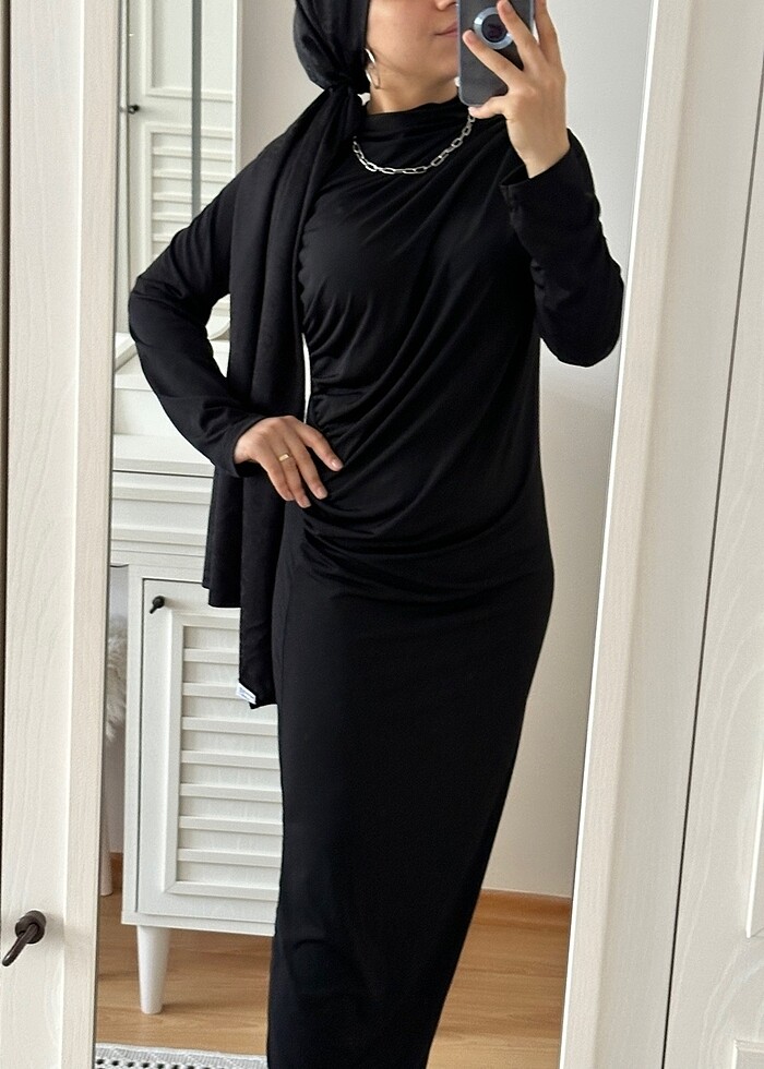 Siyah büzgülü elbise