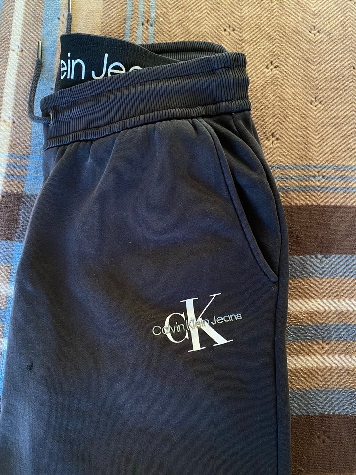 Siyah Calvin Klein eşofman altı, bol kesim, fermuarlı cepler ve yumuşak dokulu kumaş ile rahat kullanım sağlar. ️