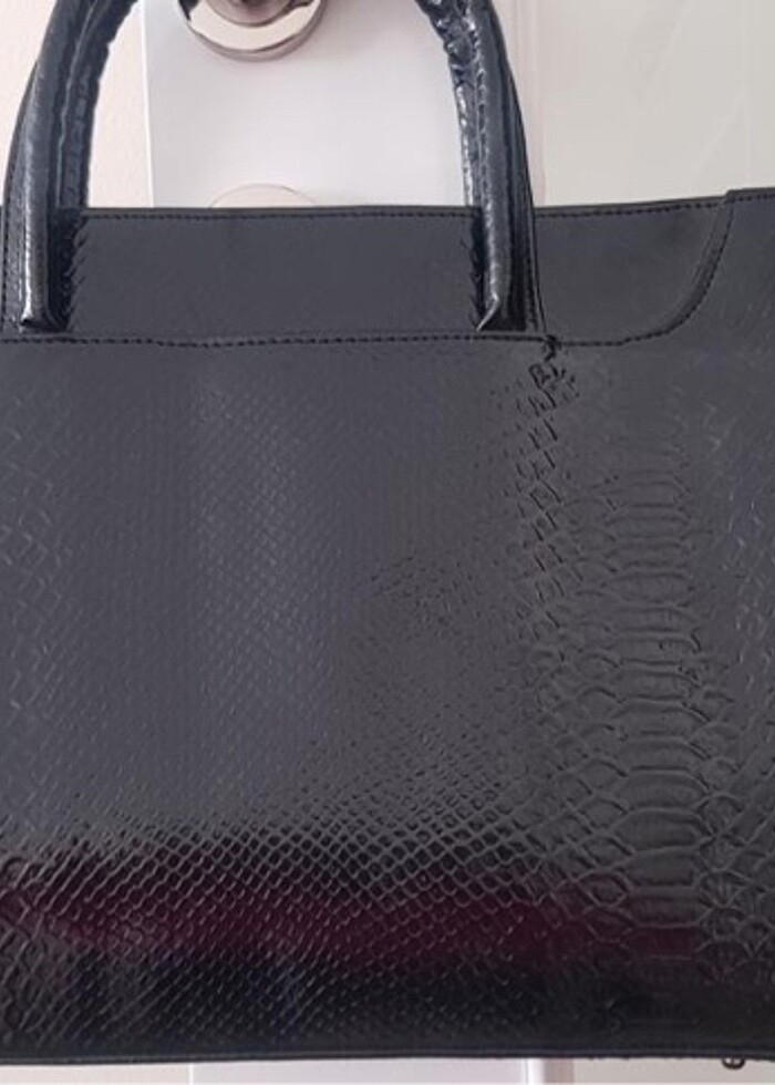 Martello Marka , siyah kendinden desenli rugan bir çanta , hem uzun askısı var. Hem de , elle tutulabilir şeklinde kullanımı mevcut.. Hem evrak , hem de büyük çanta kullananlar için tavsiye edebilirim. Herhangi bir yıpranmışlığı asla yoktur. Daha , yeni mağazadan alınmış gibidir. İş değişikliğimim sebebiyle artık bu tip çanta kullanımına ihtiyaç duymuyorum. Onun için satışa çıkartıyorum.