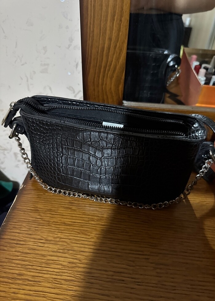 Deri baskılı desenli şık zincir detaylı çanta