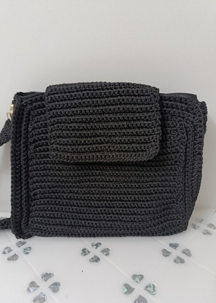 Kendi ördüğüm siyah makrome canta